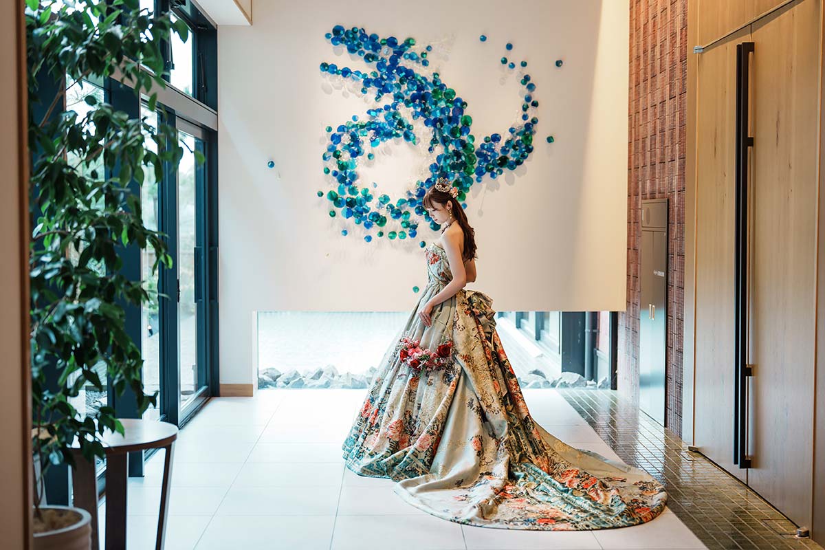 なかなか理想の一着に出会えず少し不安もありましたが、桂由美先生のドレスショップでは豊富なラインナップの中から、当初探していた赤いドレスという固定概念を忘れてしまうほど素敵なドレスに出会うことができ、本当に幸せでした。試着のたびに親身になってくださり、丁寧に寄り添ってくださったこと心から感謝しています。おかげで当日は自信を持って過ごすことができ、みんなから「お姫さまみたい♥」との言葉が沢山で一生の思い出になりました。